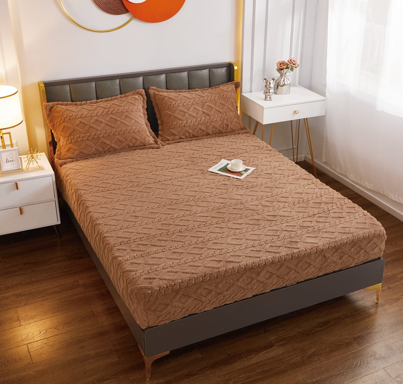 Cearceaf cu elastic + 2 fete de perna model tricotat E 180x200 CCE5279