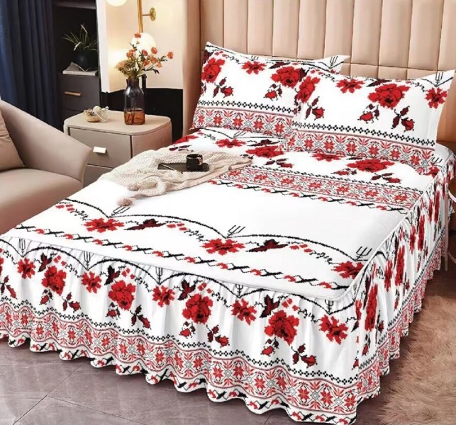 Cearceaf cu Volane din Finet + 2 Fete Perna - 160x200 CCV628